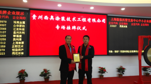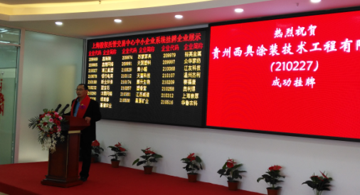 2016年11月28日,是西奧人值得永遠(yuǎn)銘記的日子。貴州西奧涂裝技術(shù)工程有限公司順利通過審核批復(fù),正式在上海股權(quán)托管交易中心掛牌上市(簡(jiǎn)稱:西奧涂裝,股權(quán)代碼:210227)。公司董事長楊景龍先生、上海澤淘投資管理有限公司總經(jīng)理梁苡平及西奧管理代表出席了本次掛牌儀式。此次掛牌標(biāo)志著貴州西奧涂裝技術(shù)工程有限公司從此登陸了資本市場(chǎng),這對(duì)西奧涂裝的發(fā)展,具有重大而深遠(yuǎn)的意義。