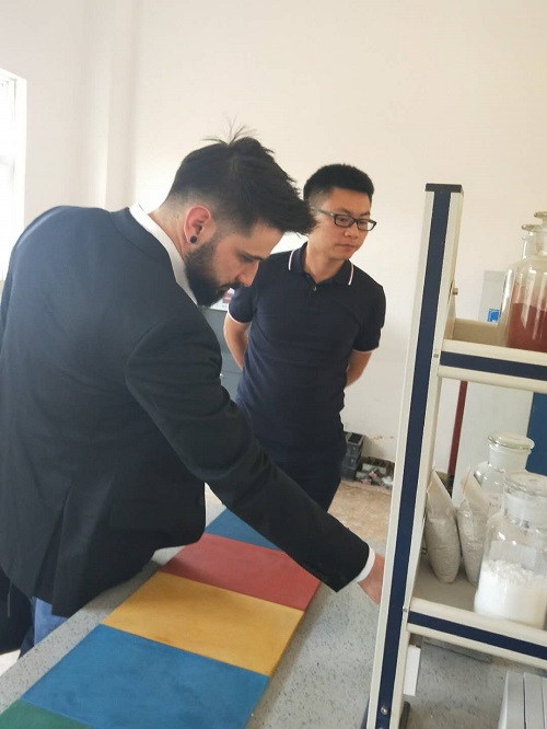 在生產(chǎn)基地,楊景龍為Nielsen進行輕質(zhì)節(jié)能墻板防火特點現(xiàn)場展示,讓客戶親自體驗了墻板的重量輕、防火性好等特性。并向Nielsen介紹,目前西奧的墻板生產(chǎn)能力居中國西南地區(qū)前列,并且產(chǎn)品已出口東南亞、非洲等多個國家。