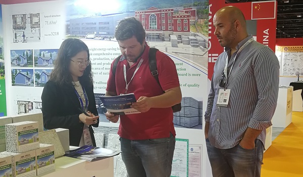 產(chǎn)品綠色、健康、環(huán)保,這是客戶最關注的問題?催^西奧集團的快速裝配式別墅,再用手機上觀看墻板的防火、防水實驗后,觀展客戶紛紛索取資料并留下聯(lián)系方式。